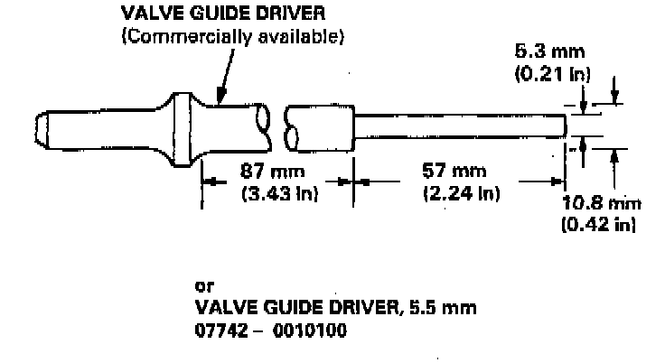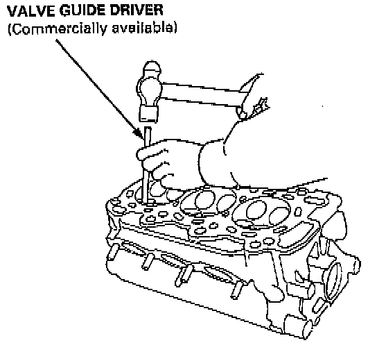 1. As illustrated, use a commercially available air impact valve guide driver attachment modified to fit the diameter of the valve guides. In most cases, the same procedure can be done using the special tool and a conventional hammer.