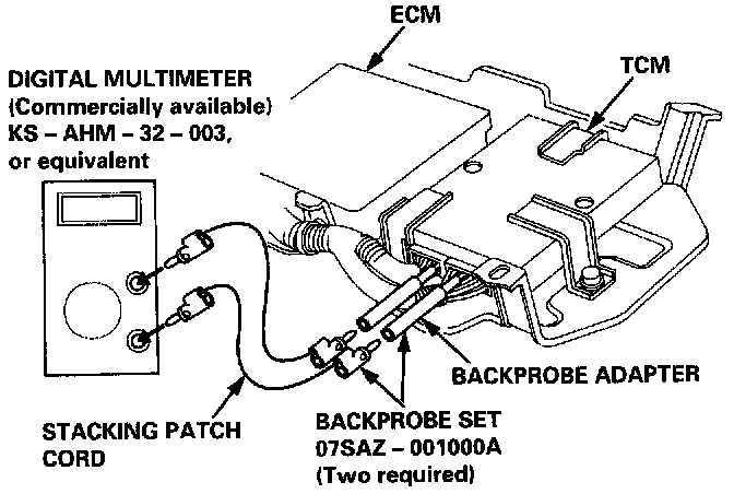 4. Inspect the circuit on the TCM or PCM according to the troubleshooting flowchart with the special tools and a digital multimeter as shown.