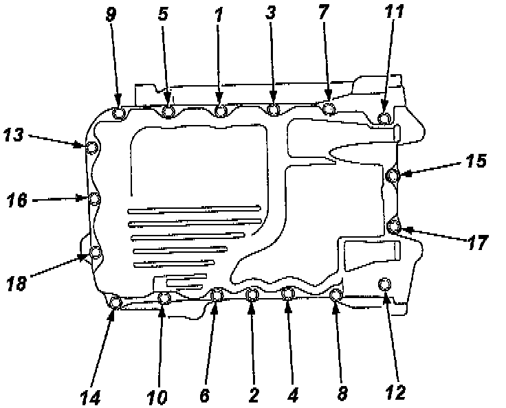 Tighten bolts to 12 Nm (107 in. lbs.). Refer to image for tightening sequence.