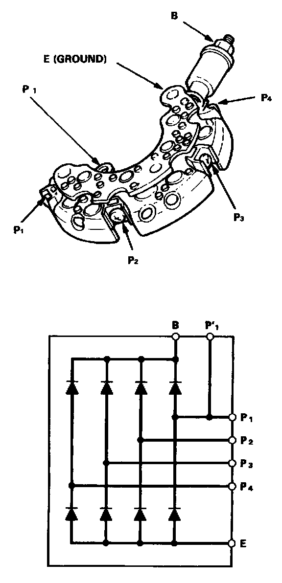 2. If any of the eight diodes fail, replace the rectifier assembly. (Diodes are not available separately.)
