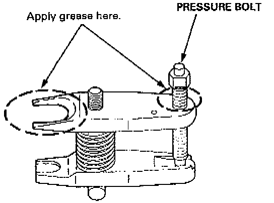 14. Apply grease to the special tool on the areas shown. This will ease installation of the tool and prevent damage to the pressure bolt threads.