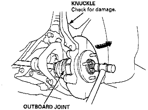 26. Pull the knuckle outward and remove the driveshaft outboard joint from the knuckle using a plastic hammer, then remove the knuckle.