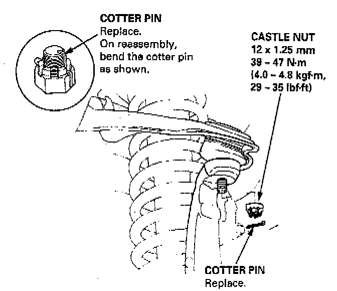 - Torque the castle nut to the lower torque specification, then tighten it only far enough to align the slot with the pin hole. Do not align the nut by loosening.