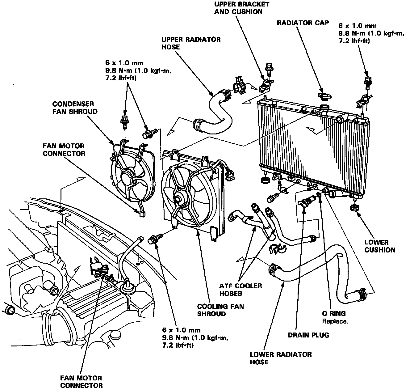 2. Remove the upper and lower radiator hoses, and ATE cooler hoses.