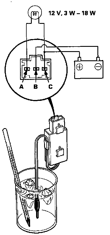 A/C Thermostat / TestConnect battery power to terminal C and ground terminal B, and connect a test light between terminals A and C.