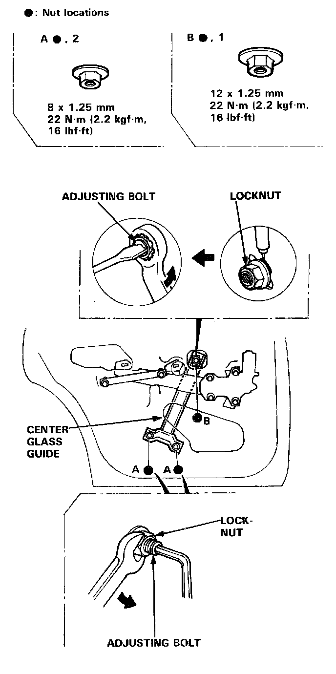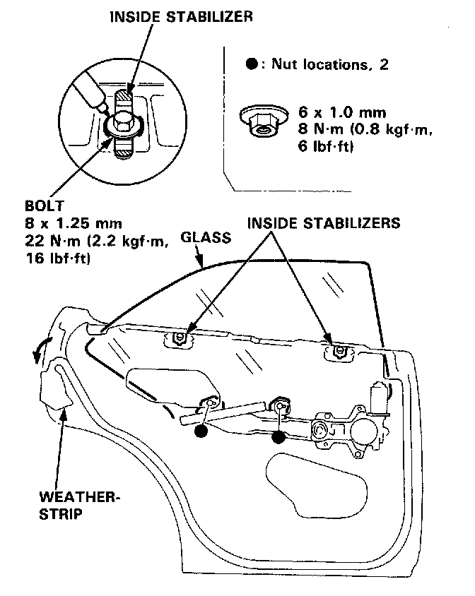 12. Roll the glass up and down to see if it moves freely without binding. Also make sure that there is no clearance between the glass and weatherstrip when the glass is closed. Adjust the position of the glass as necessary.
