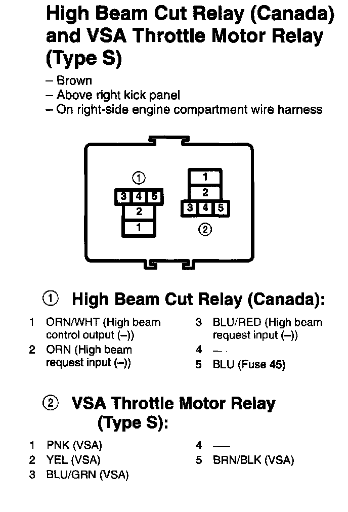 High Beam Cut Relay (Canada) and VSA Throttle Motor Relay (Type S):
