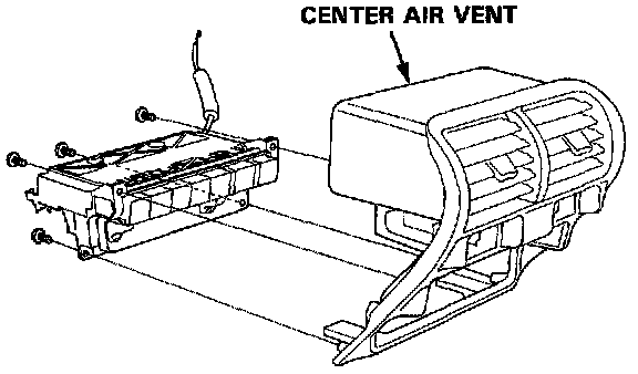 3. Remove the two self-tapping screws, then pull out the heater control panel and the center air vent. Disconnect the connectors, and remove the heater control panel and the center air vent.