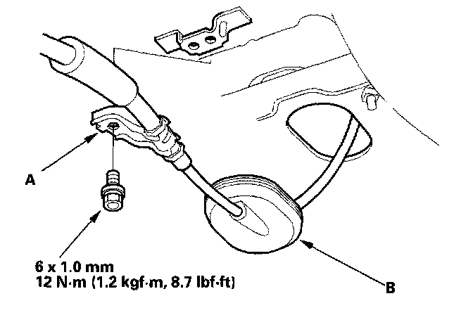 8. Remove the shift cable guide bracket (A) and grommet (B).