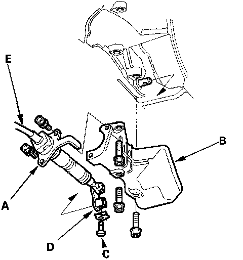 14. Install the lock bolt (D) with a new lock washer (E), then bend the lock washer tab against the bolt.
