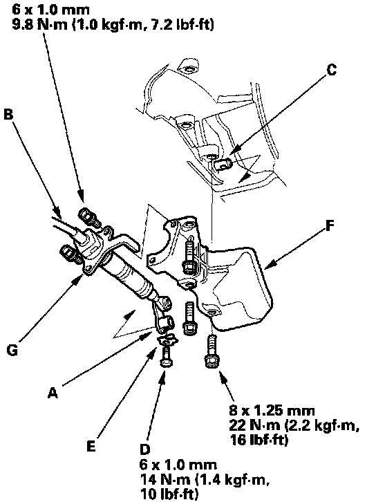 15. Install the shift cable cover (F), then install the shift cable holder (G) on the cover.