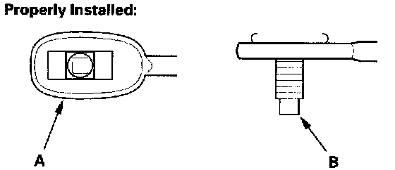 22. Verify that the shift cable end (A) is properly installed on the mounting stud (B).