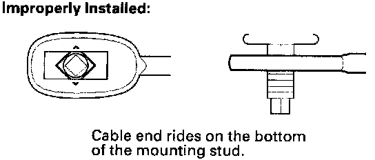 23. If improperly installed, remove the shift cable from the shift lever bracket base, and reinstall the shift cable. Do not install the shift cable end on the mounting stud while the shift cable is on the shift cable bracket base.
