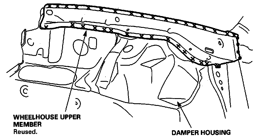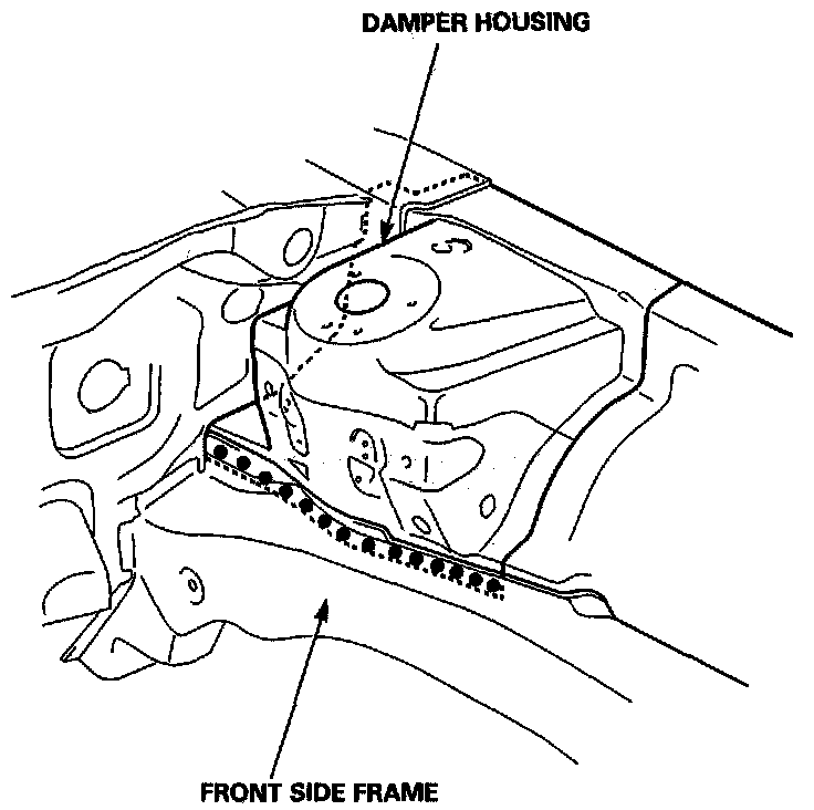 - Check the damper housing for position and damage. If necessary, remove the wheelhouse upper member, and replace the damper housing. Carefully remove the wheelhouse upper member so it can be reused.