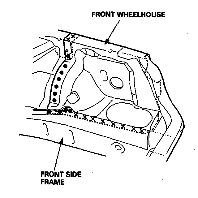 When replacing the front wheelhouse only, butt weld the wheelhouse upper member.