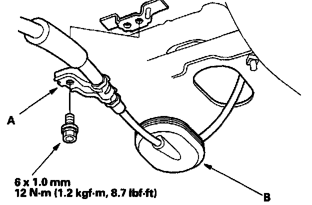 8. Remove the shift cable guide bracket (A) and grommet (B).