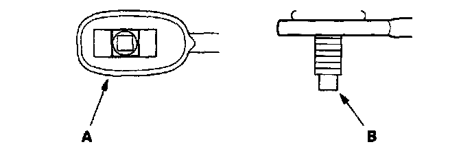 22. Verify that the shift cable end (A) is properly installed on the mounting stud (B).