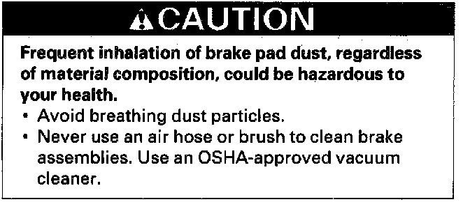 If you are reusing the pads, always reinstall the pads in their original positions to prevent a momentary loss of braking efficiency.