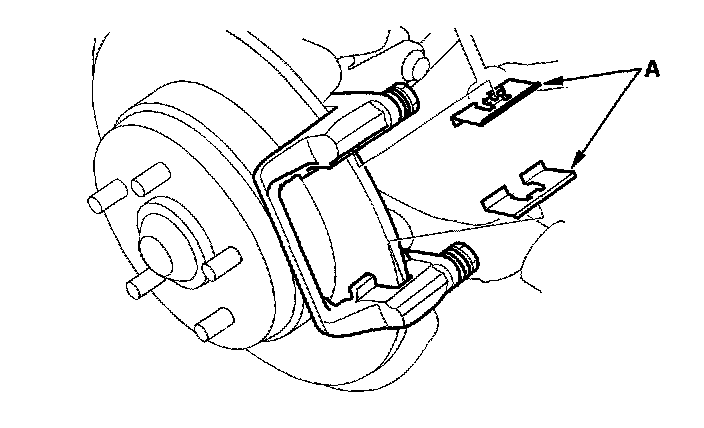 6. Remove the pad retainers (A).