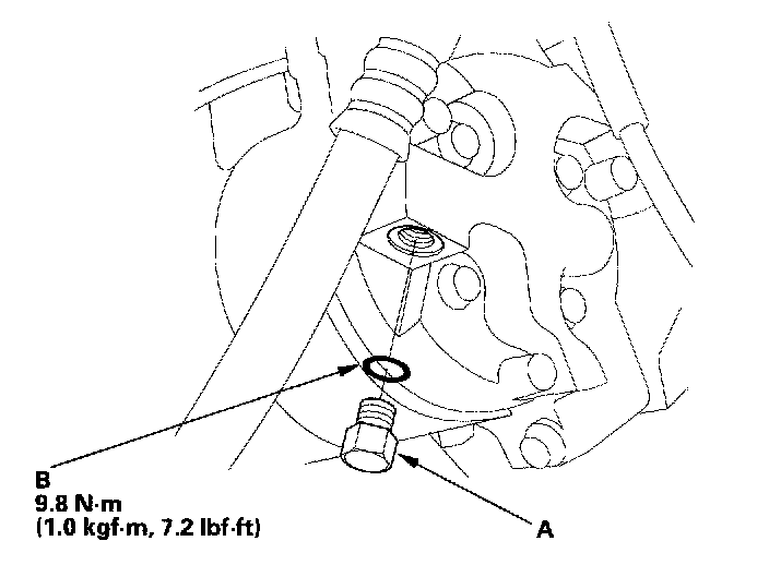 2. Remove the relief valve (A), and the O-ring (B). Plug the opening to keep foreign matter from entering the system and the compressor oil from running out.