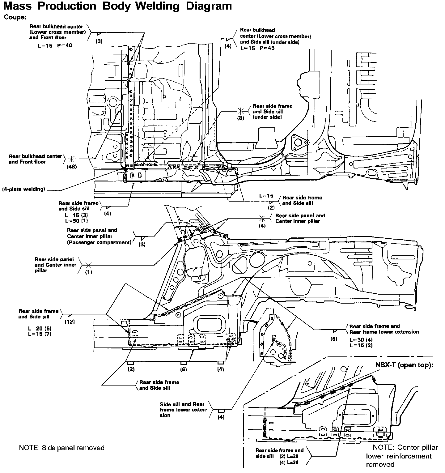 6. Remove the center inner pillar and rear bulkhead center on each side (coupe only).