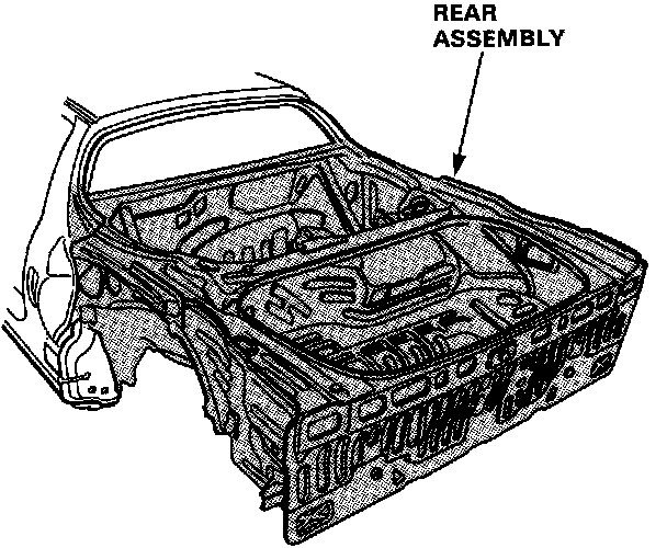 NOTE: The frame number of the car is stamped on the trunk front panel and is registered with local authorities. If the rear assembly must be replaced because of damage, check with local authorities before replacement.