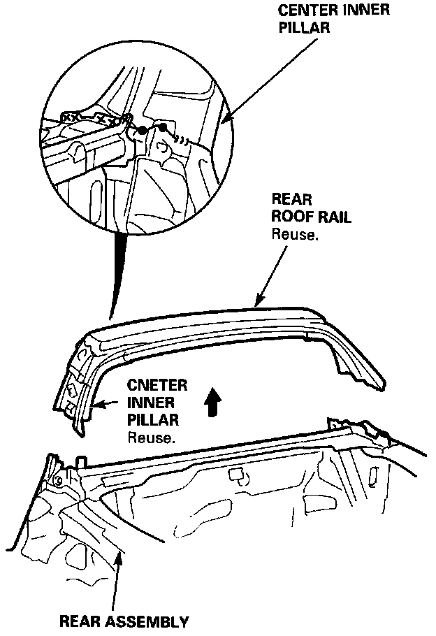 - Remove the center inner pillar and rear roof rail.