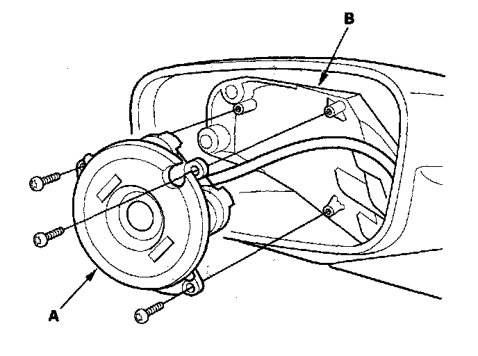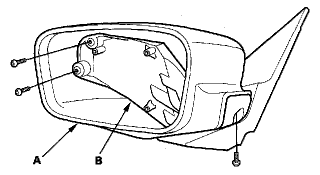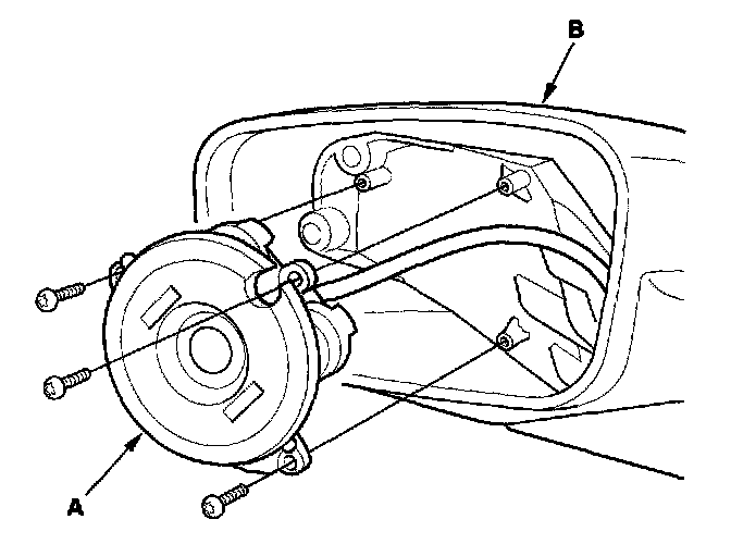 4. Remove the three Torx screws, and separate the power mirror actuator (A) from the housing (B).