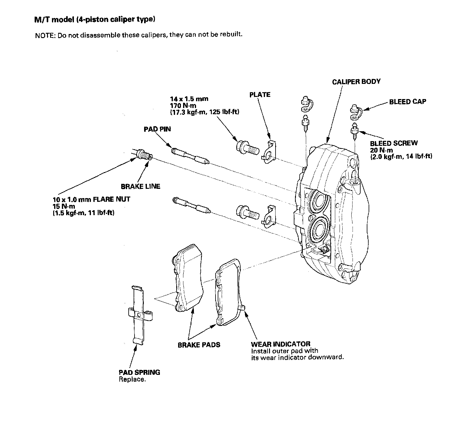 Front Brake Caliper OverhaulCAUTION: Frequent inhalation of brake pad dust, regardless of material composition, could be hazardous to your health.