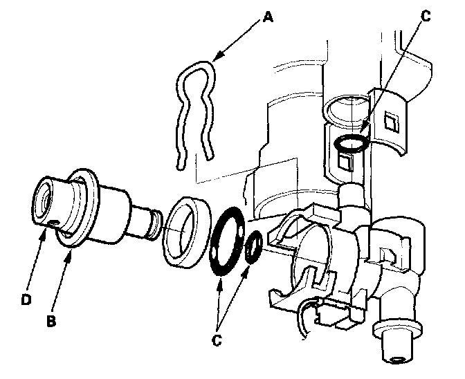 Make sure the regulator is installed with the drain hole (D) facing down.