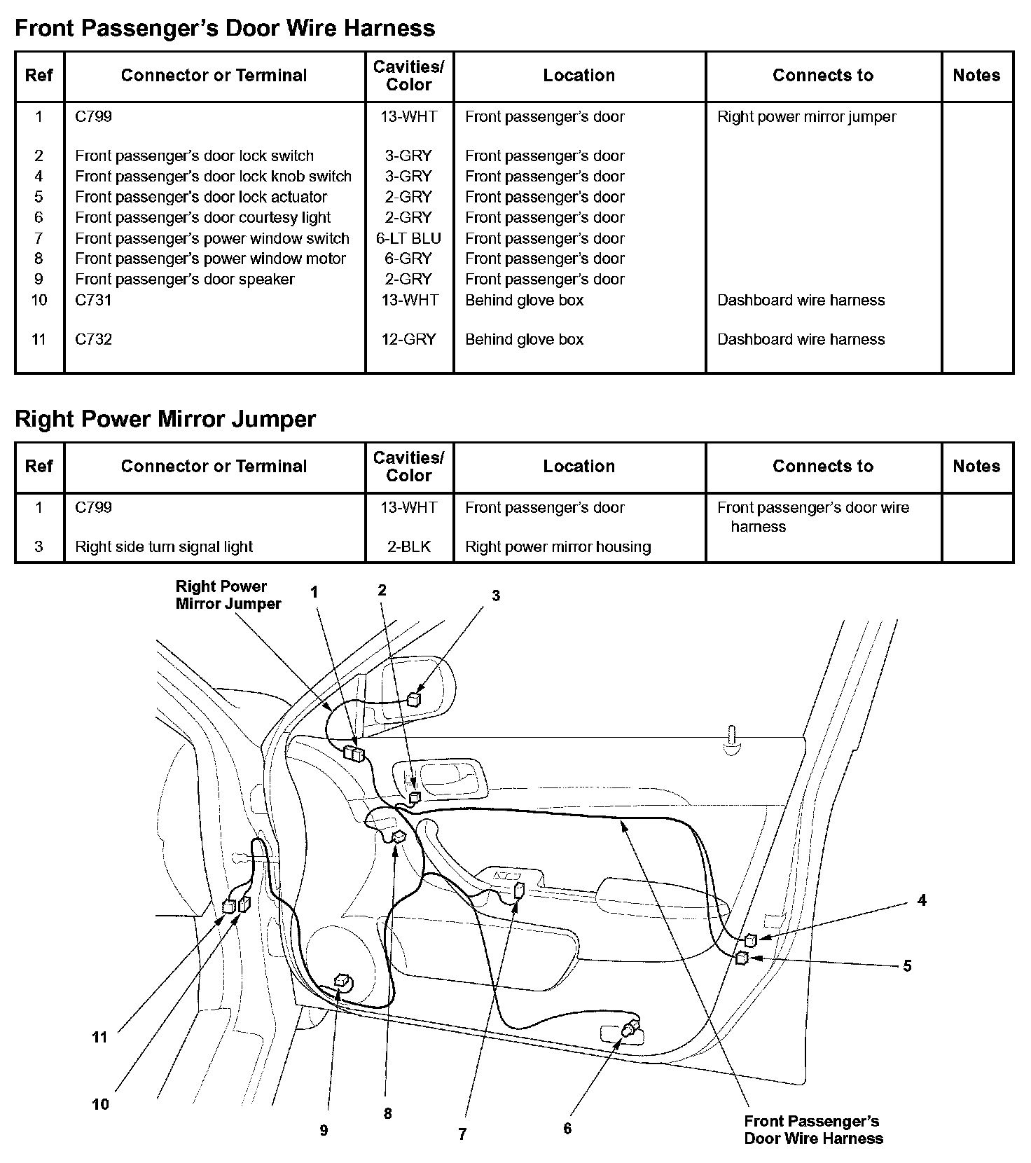 Front Passenger's Door Wire Harness/Right Power Mirror Jumper: