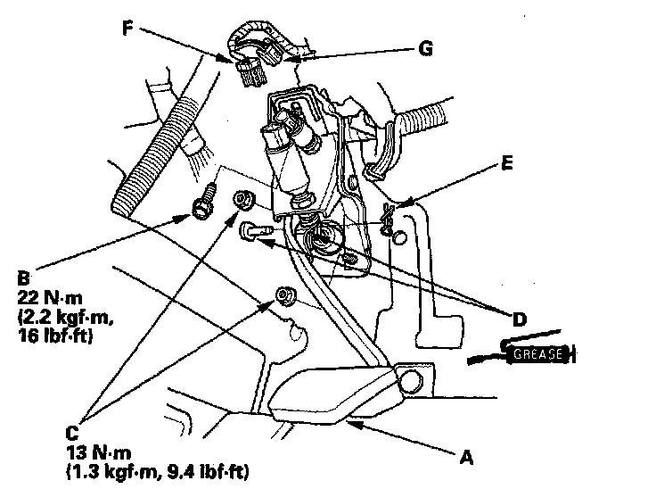 Clutch Pedal Replacement1. Disconnect the clutch pedal position switch connector (A) and clutch interlock switch connector (B).