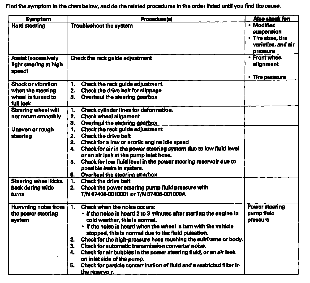 Find the symptom in the chart below, and do the related procedures in the order listed until you find the cause.