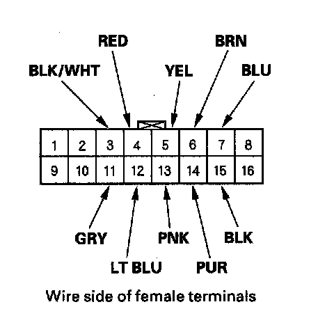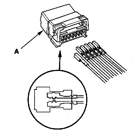 10. Install the new actuator terminals into the connector in the original arrangement as shown.
