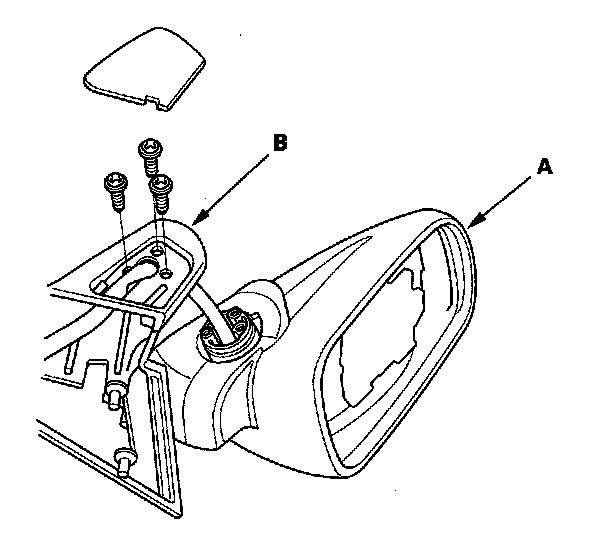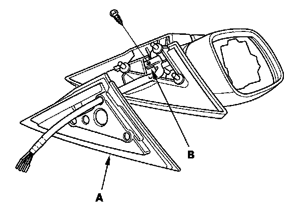 5. Remove the three Torx screws, and separate the mirror housing (A) from the bracket (B).
