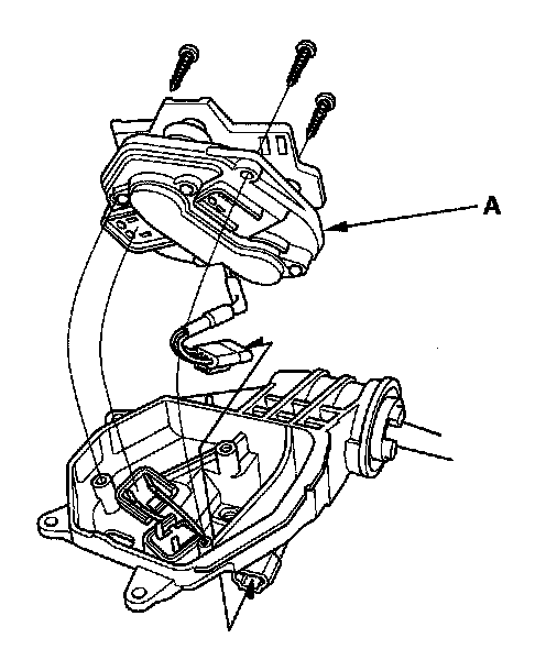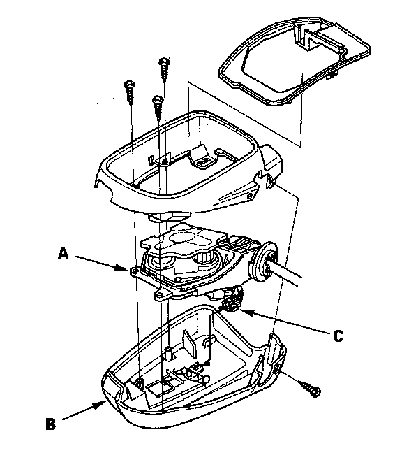 6. Remove the screws and separate the actuator (A) from the housing (B), then disconnect the side turn signal light 2P connector (C).