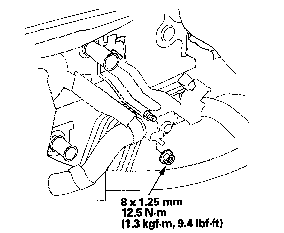 7. Remove the mounting nut from the heater unit. Take care not to damage or bend the fuel lines and the brake lines, etc.