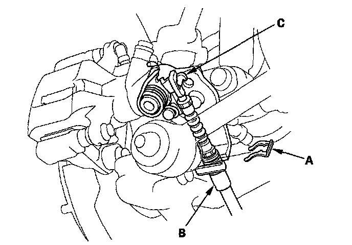 2. Remove the parking brake cable clip (A) from the brake cable (B).