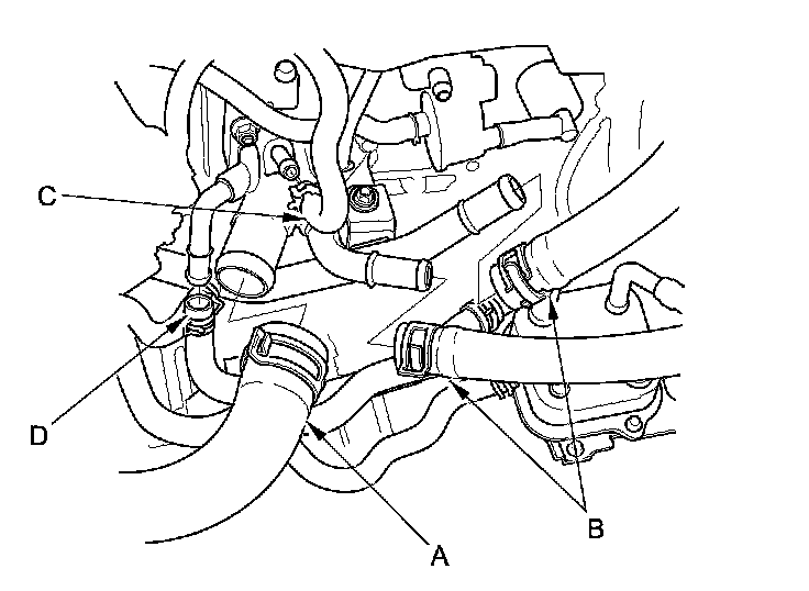 4. A/T model: Disconnect the water bypass hose (D).