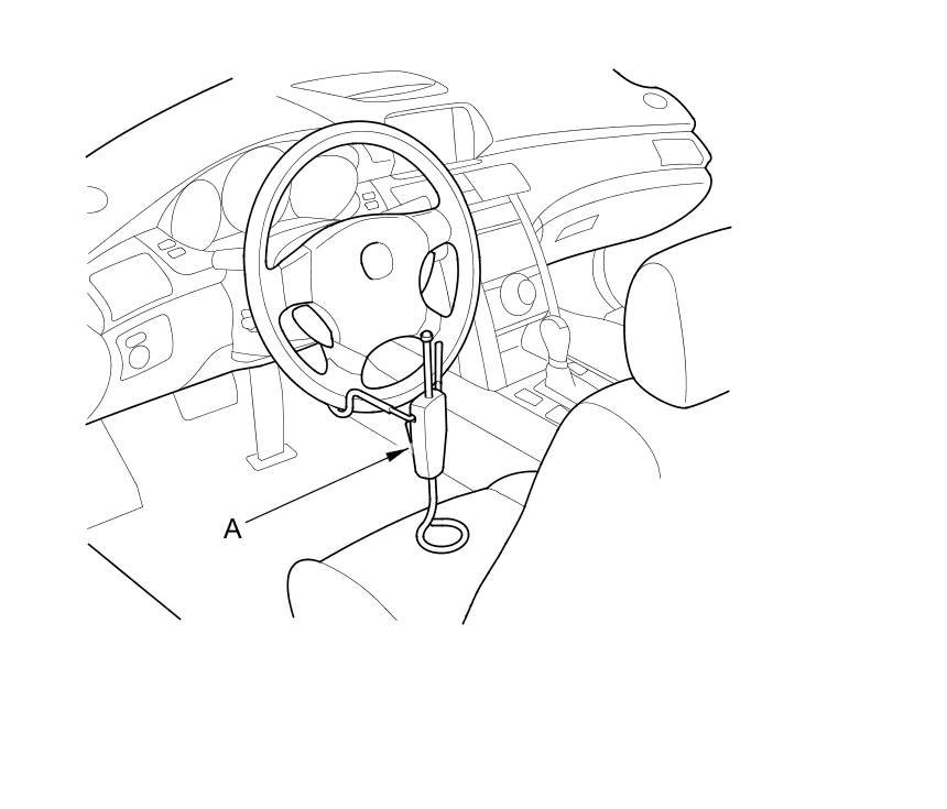 8. Center the steering wheel spokes, and install a commercially available steering wheel holder tool (A).