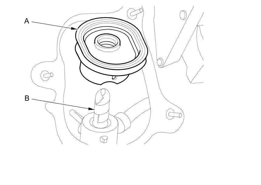 22. Remove the inlet line holder mounting bolt (A) and return line holder mounting bolt (B) on the gearbox.