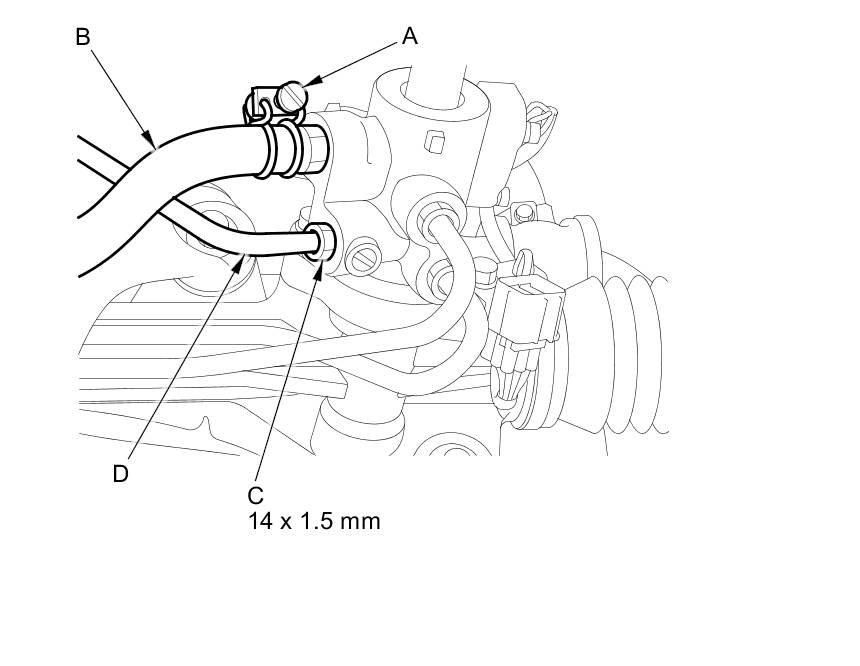 25. Loosen the 14 mm flare nut (C), and disconnect the inlet line (D).