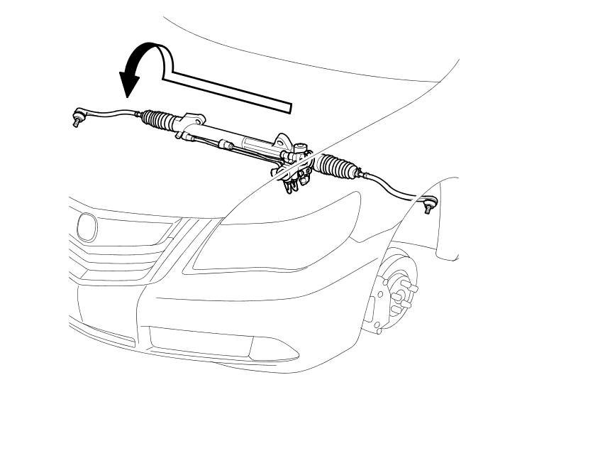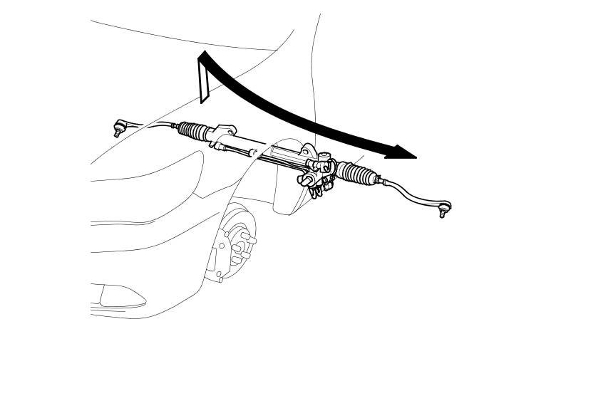 33. Carefully move the steering gearbox as an assembly toward the driver's side of the vehicle until the pinion shaft clears the wheelwell opening. Be careful not to damage the brake lines with the pinion shaft.