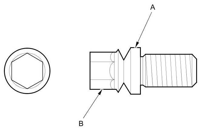 8. Tighten the shear bolts (A) until the hex heads (B) twist off.