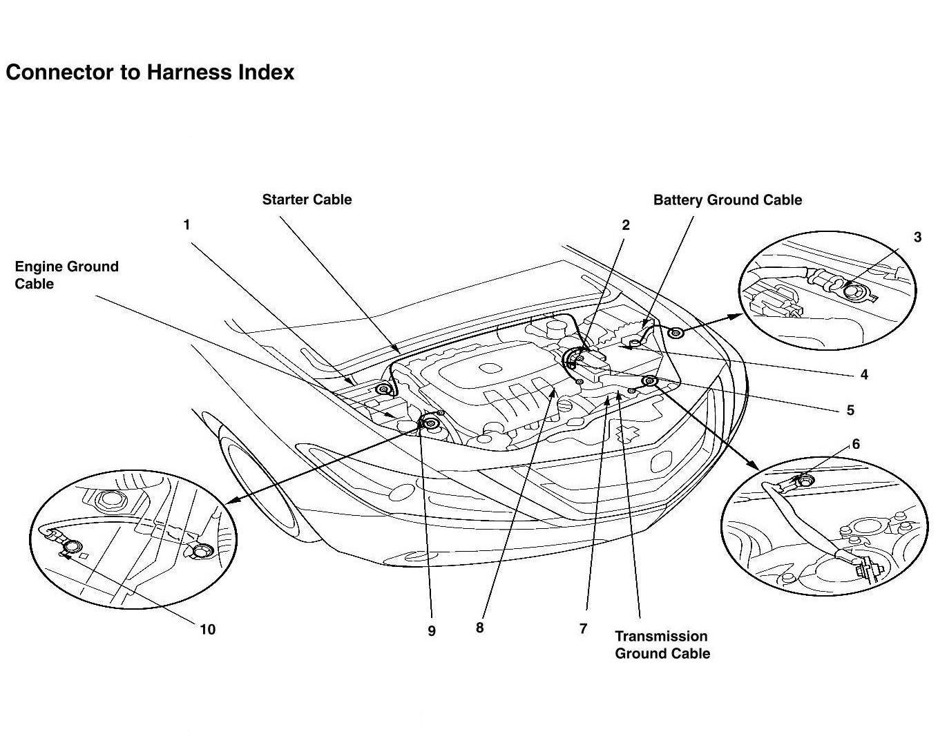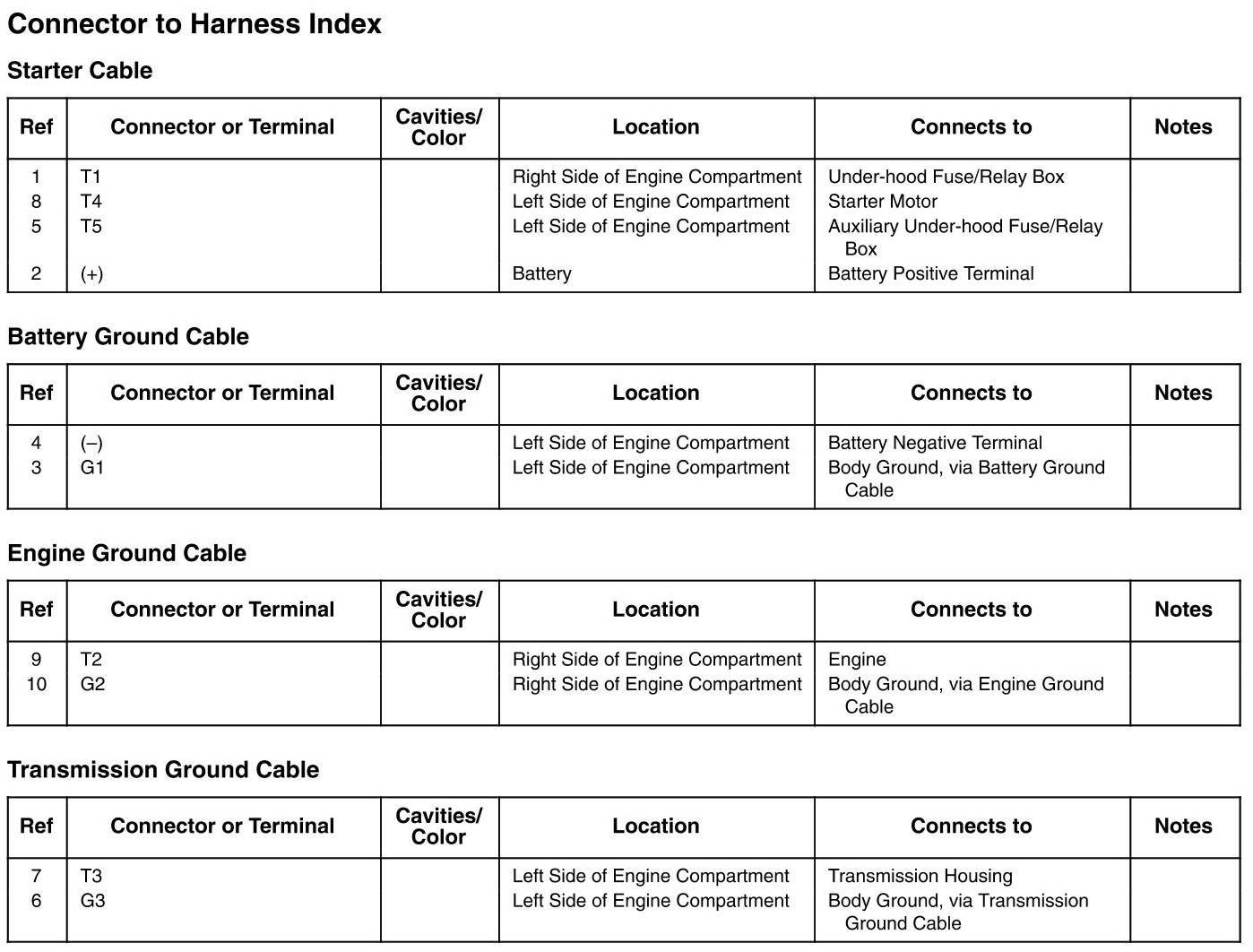Starter Cable, Battery Ground Cable, Engine Ground Cable, And Transmission Ground Cable