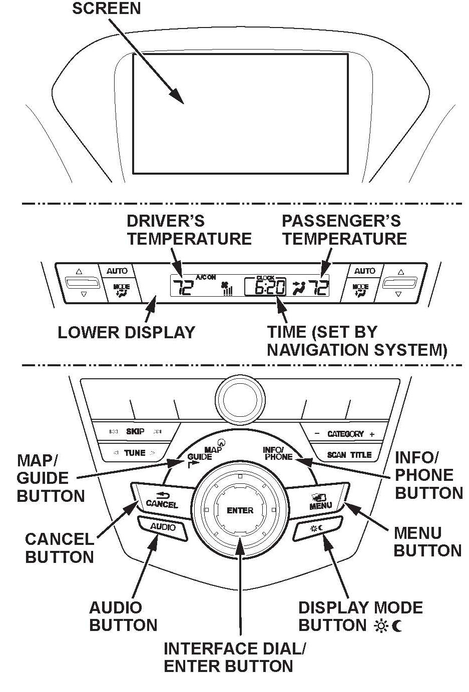 ^ Partially displayed traffic data does not indicate a problem with the navigation system. Traffic flow and density varies from day to day and from one road to another. If your area has traffic, but it is not displaying on the screen, refer to the Navigation section of the 2010-11 ZDX Service Manual.