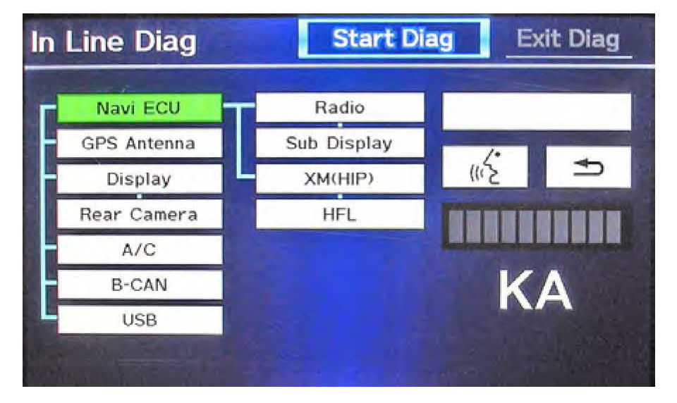 ^ At the Select Diagnosis Items screen, select Detail Information & Settings, then select Unit Check, then Navi ECU. The system runs a brief diagnostic, then the navigation unit serial number is displayed at the bottom of the screen.