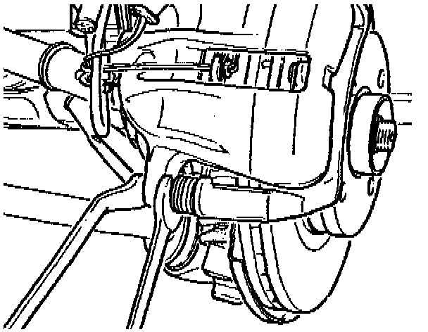 3. Remove lower caliper mounting bolt, holding guide pin with open end wrench.
