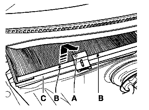 - The dust and pollen filter element must be installed correctly in frame -C-. Arrows -B- indicate the direction of air flow.