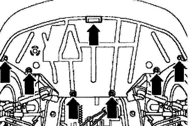 - Remove bolts -arrows- for exhaust pipe of parking heater/auxiliary heater on noise insulation.